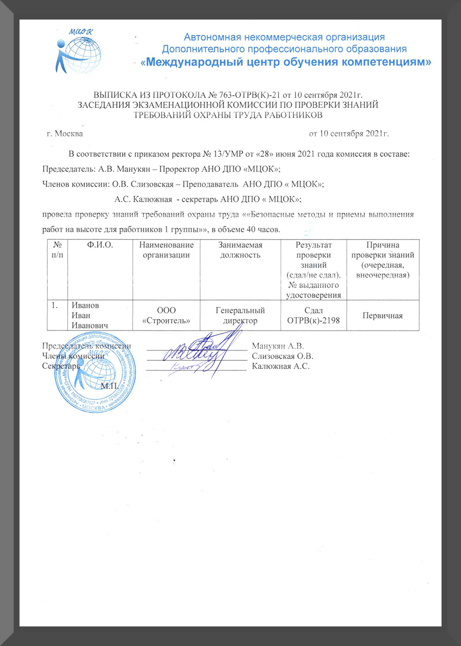 оформления удостоверения по работам на высоте